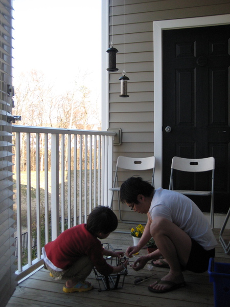 前幾週天氣變暖了,這個春天在這個新住所我們當然也要迎接歡迎我們的鄰居:)所以feeder掛出來。