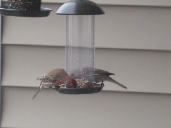 第一雙來報到的是tufted titmice..不過沒能照到他們。而house finch是目前來訪最頻繁的(where are the gold finches??)