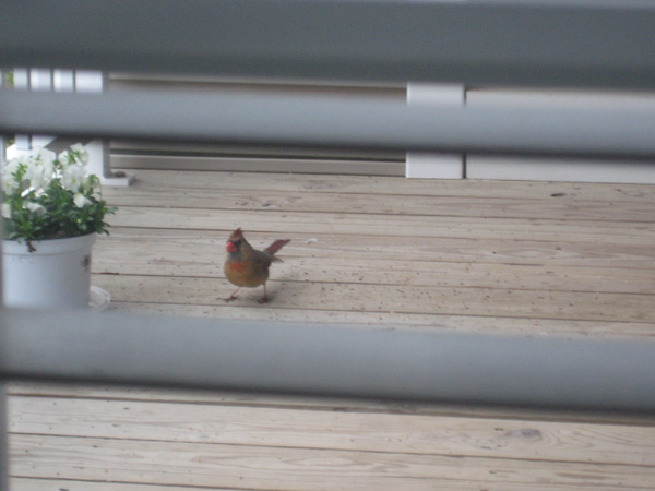 然後我最最愛的chickadee也來了!小涼最愛的cardinal 也來了(公的一樣太沒膽,很難照到)。