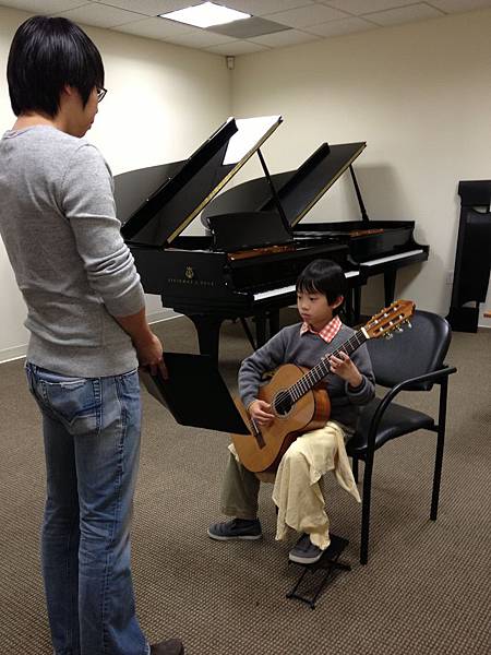 小涼今年二月時開始學古典吉他. 為什麼挑這個樂器呢? 去年底小涼拔和朋友組了個樂團, 小涼陪著把拔練團, 有一天小涼和我們說他想學吉他組樂團, 我們就開始找這附近好的音樂學校, 適合小涼的古典吉他老師. 最後選上 Levine Shcool of Music 的古典吉他 program. 先去和 program director interview, 讓他們了解小涼的個性, 還有他的想法,目標以及我們的要求後, program director 介紹了我們小涼現在的吉他老師.